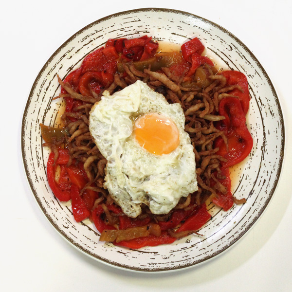 Chanquetes, Pimientos Asados y Huevo Frito